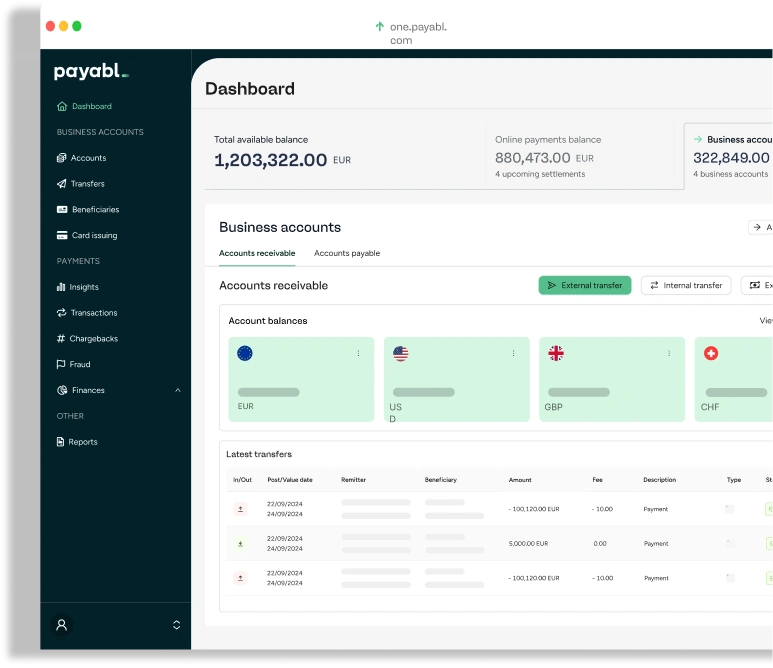 Money is always in motion. It powers every decision and opportunity in your business. At payabl., we help you take control of this movement, transforming it into money flow that drives growth. We connect payments and business accounts in one platform, going beyond standard provider's payment processing solutions to give you complete visibility and the tools to navigate any complexity.
